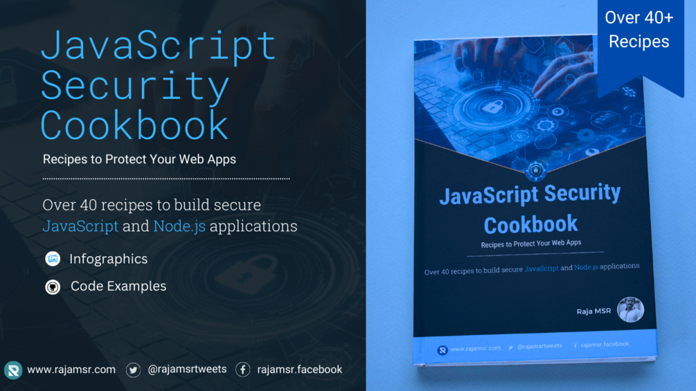 This eBook (PDF) contains more than 40 recipes that you use to secure your JavaScript and Node JS based applications. It has 60+ pages of delicious and easy-to-follow instructions.